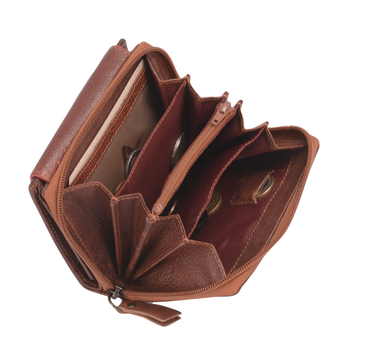 - 4-fach geteiltes Münzfach mit einem Reißverschlussfach