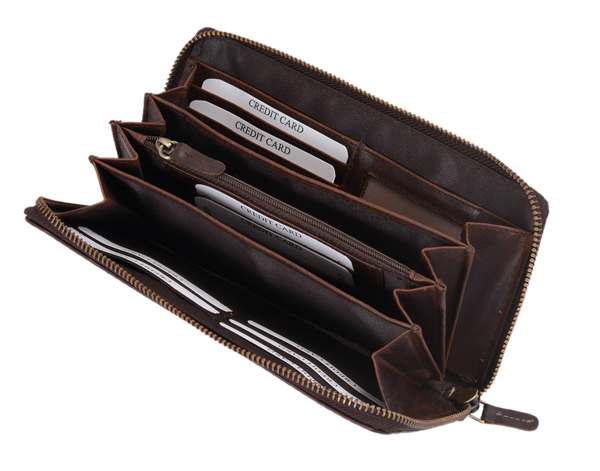 Praktische Damenbörse mit viel Stauraum aus robustem Rindleder in der Trendfarbe - brandy.
