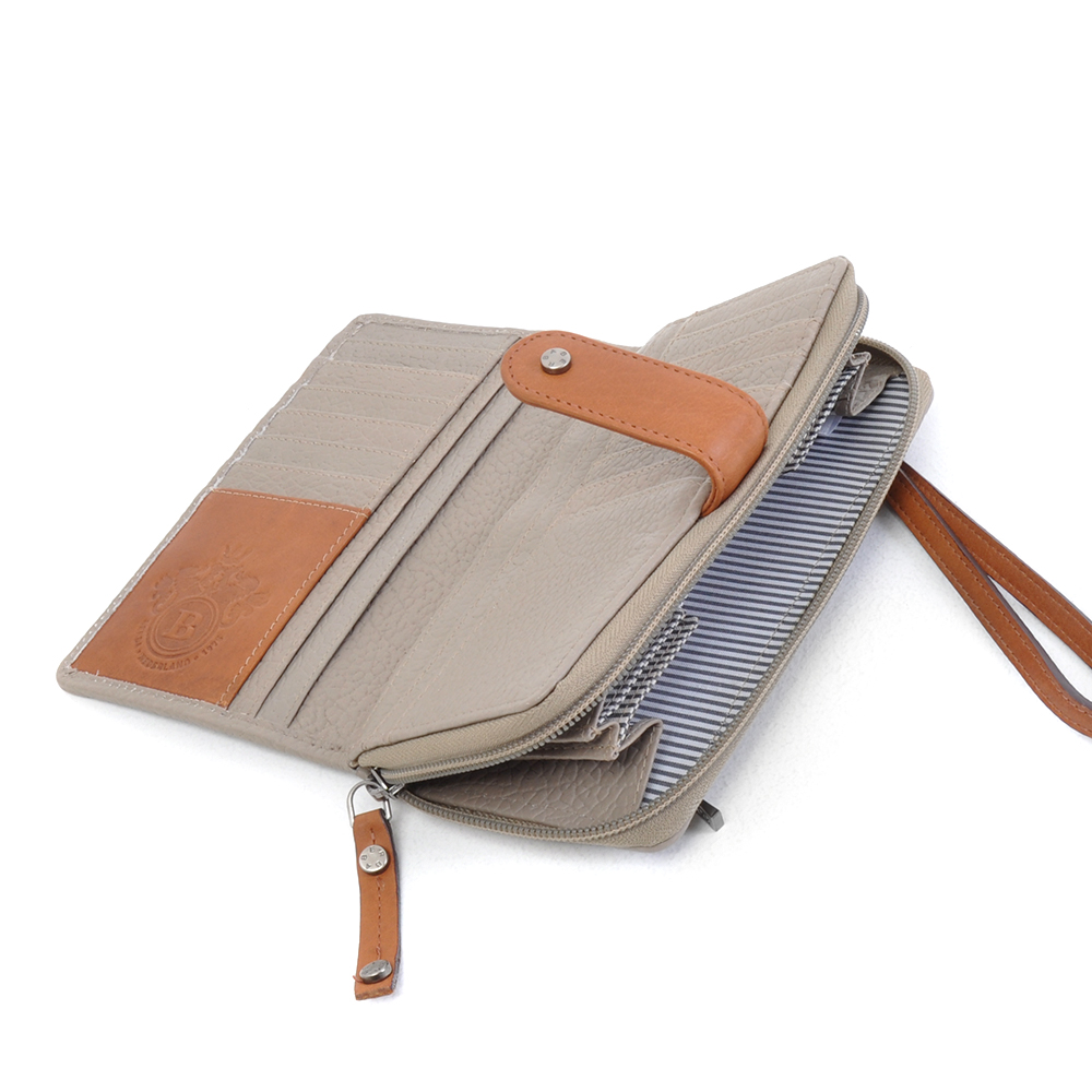 Diese Brieftasche ist in der Tat mehr als nur eine Geldbörse. Und wenn Sie alles ordentlich in diesem geräumigen Portemonnaie verstaut haben, können Sie es als eine Art Clutch verwenden. Sie können es am mitgelieferten Armband tragen, sehr handlich und hip! Natürlich gibt es viel Platz für Kleingeld, Karten und Notizen, Quittungen usw. und es gibt auch mehr als genug Platz für Ihre Karten. Sie schließen das Portemonnaie mit einem cognacfarbenen Riemen, stilvoll und besonders sicher! Dieses coole, multifunktionale Portemonnaie ist Teil der berühmten Chamonix-Linie von berba.